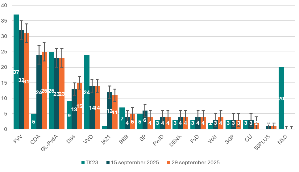 Violence in The Hague Does Not Lead to Electoral Shifts | Ipsos I&O Seat Poll - 29 Sept. 2025 |